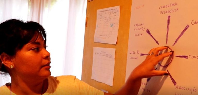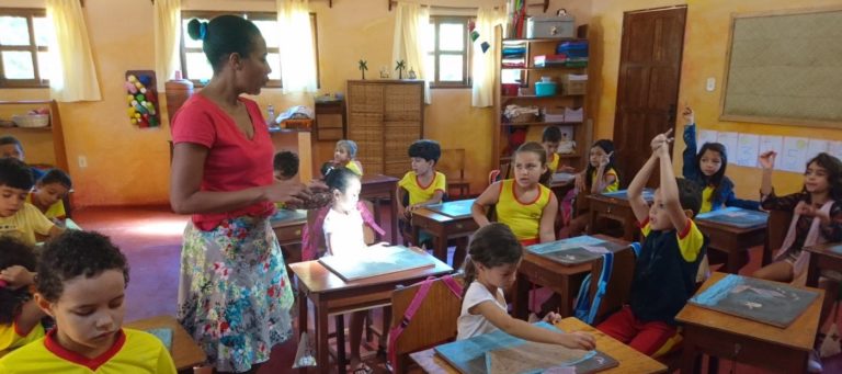Ana Débora – Isso é a coisa mais linda! Às vezes eu chego na escola e pergunto: Não está tendo aula não? É por causa do silêncio! Não é o que a gente está acostumada a ver nas escolas em geral. Estão todos nas suas salas fazendo alguma atividade. A gente percebe uma diferença, nas crianças, nos pais, até no porteiro da escola, muito atencioso com quem pedia alguma informação. Não sei dizer exatamente por que essa diferença, mas que a gente percebe isso lá, percebe.